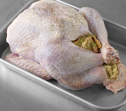 Start with a completely defrosted bird (allow 24 hours in the fridge for every 5 lbs., the safest way to defrost).